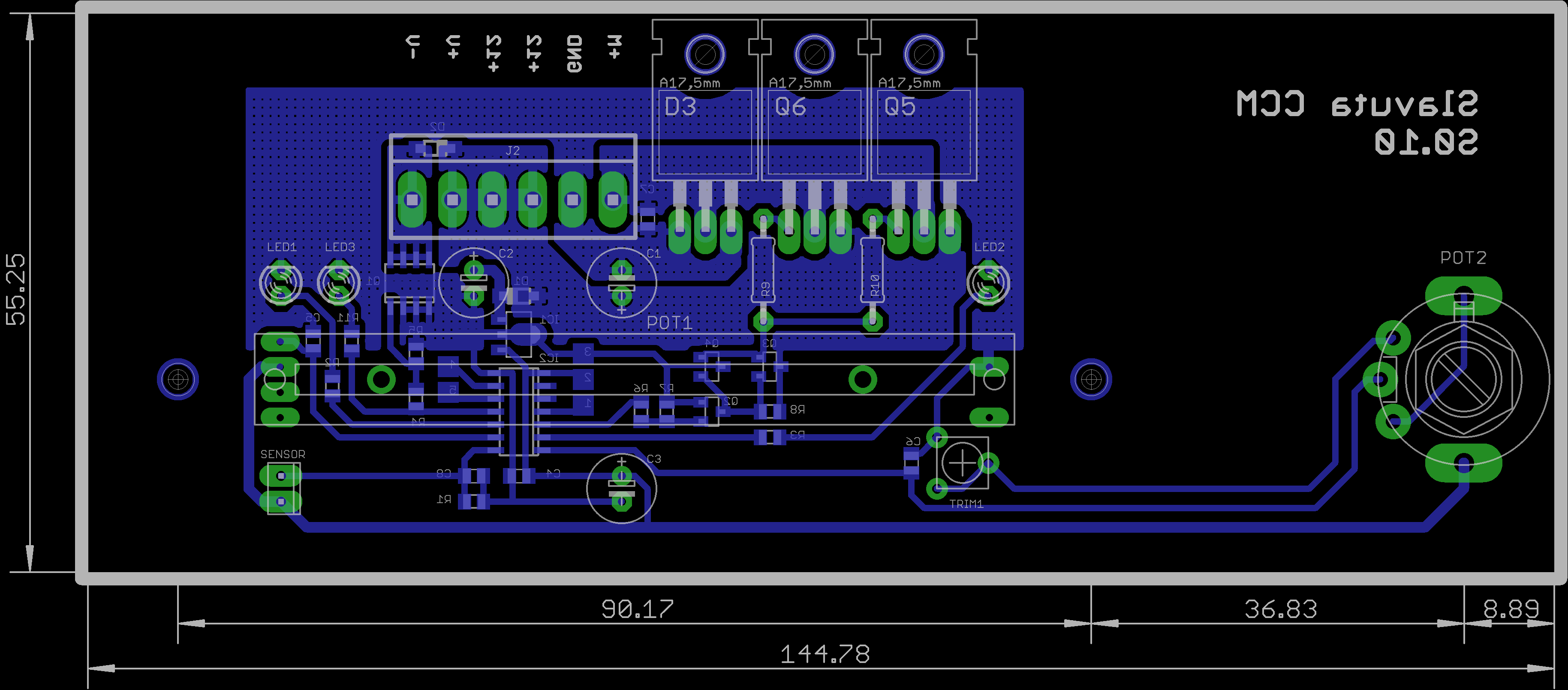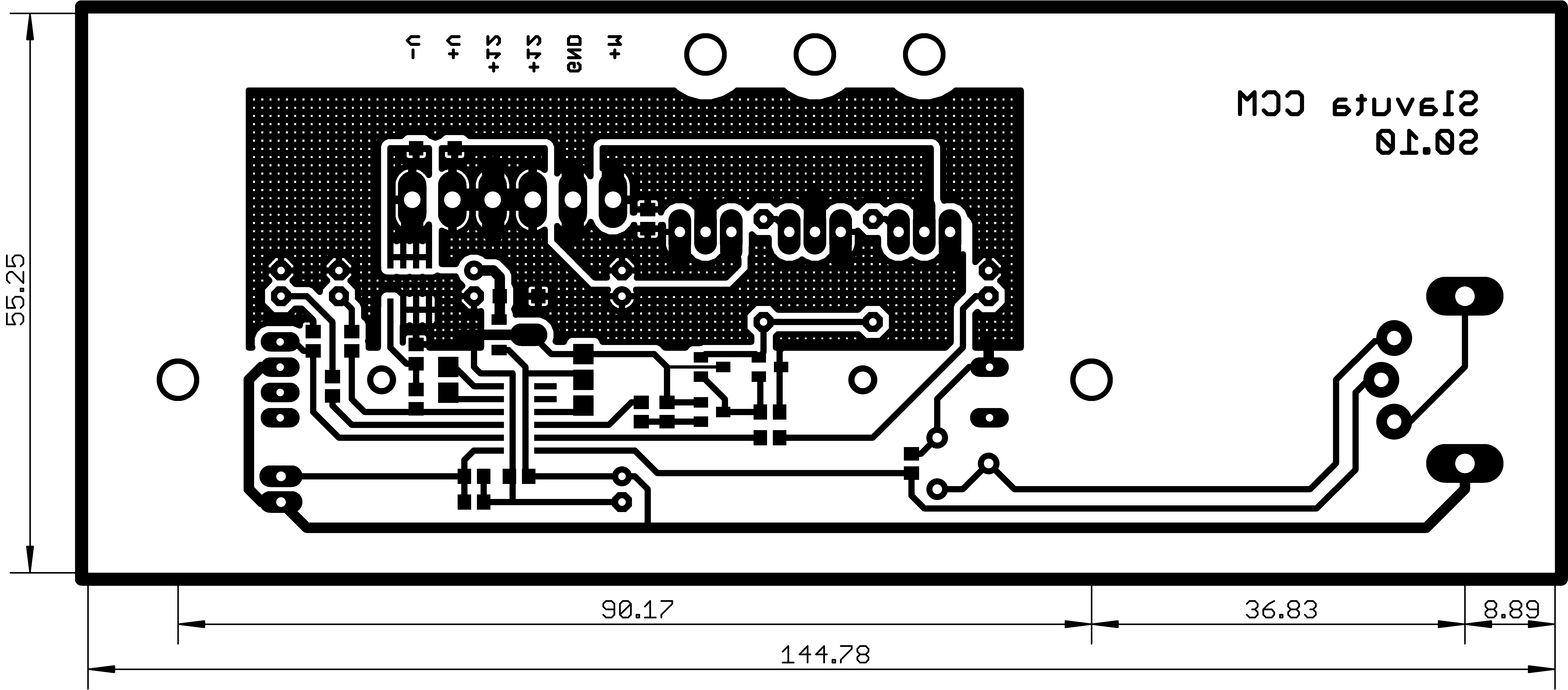 Плата одностороння, зручна для домашнього виготовлення за допомогою "ЛПТ-технології". Бажано виготовляти з стеклотекстоліту FR-4 товщиною не менше, ніж 1,5мм.